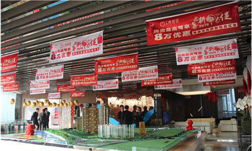 墻頂上吊下來(lái)金光燦燦的金蛋,充滿著喜慶;凡認(rèn)籌客戶即可現(xiàn)場(chǎng)砸金蛋,領(lǐng)取家電大禮;同時(shí)可以抽取最高18888元的購(gòu)房紅包(代金券)。