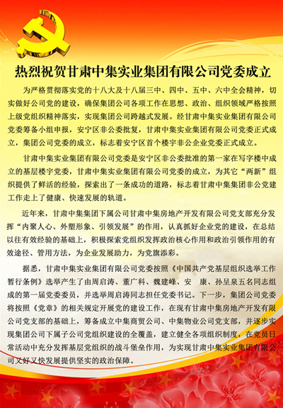 2017年5月19日,熱烈祝賀甘肅中集實(shí)業(yè)集團(tuán)有限公司黨委成立;