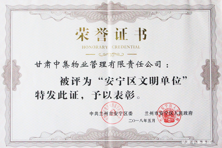 甘肅中集物業(yè)管理有限責任公司被蘭州市安寧區(qū)委、安寧區(qū)人民政府聯(lián)合授予“文明單位”..