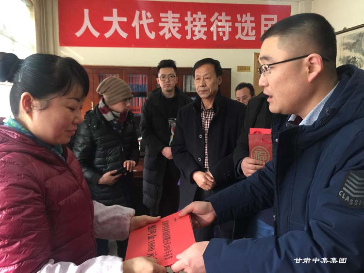 2018年2月7日上午,在2018年新春佳節(jié)即將來(lái)臨之際,甘肅省慈善總會(huì)榮譽(yù)會(huì)長(zhǎng)、安寧區(qū)人大代表、甘肅中集集團(tuán)董事長(zhǎng)周啟濤親自安排部署,并委托集團(tuán)公司黨委委員魏建峰、安 康兩位同志親自前往安寧區(qū)十里店街道辦事處,在街道黨工委副書記、人大工委主任梅鵬飛等領(lǐng)導(dǎo)陪同下,開展愛心送溫暖行動(dòng),為街道10戶特困家庭送上新年的祝福和慰問(wèn)金。