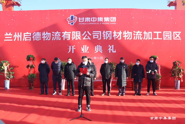 2021年1月12日上午10:18分,甘肅中集實(shí)業(yè)集團(tuán)有限公司旗下蘭州啟德物流有限公司河口鋼材物流加工園區(qū)開(kāi)業(yè)慶典在甘肅物產(chǎn)集團(tuán)河口物流園隆重舉行。甘肅中集實(shí)業(yè)集團(tuán)有限公司黨委書(shū)記、董事長(zhǎng)周啟濤隆重宣布物流園開(kāi)業(yè)。酒鋼集團(tuán)、八一鋼鐵集團(tuán)、內(nèi)蒙古包鋼集團(tuán)、甘肅省物產(chǎn)集團(tuán)河口物流園、甘肅省鋼材商會(huì)、物流園轄區(qū)及公司合作伙伴等100余名領(lǐng)導(dǎo)嘉賓參加開(kāi)業(yè)慶典。